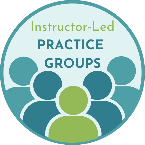 Practice Groups are offered monthly to support consistent growth and skill development. Each level meets on a predictable schedule so you can build practice into your routine.